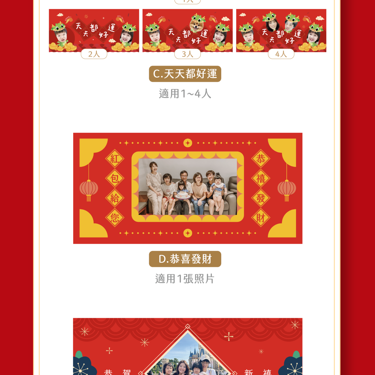 紅色設計搭配金色元素,充滿喜氣氛圍;