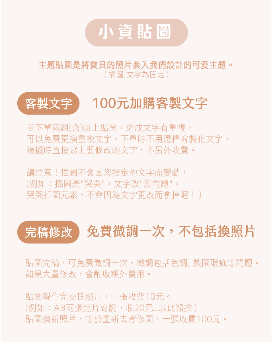 主題&小資貼圖因為價格較優惠,完稿後提供一次免費微調(修改張數1/4內),