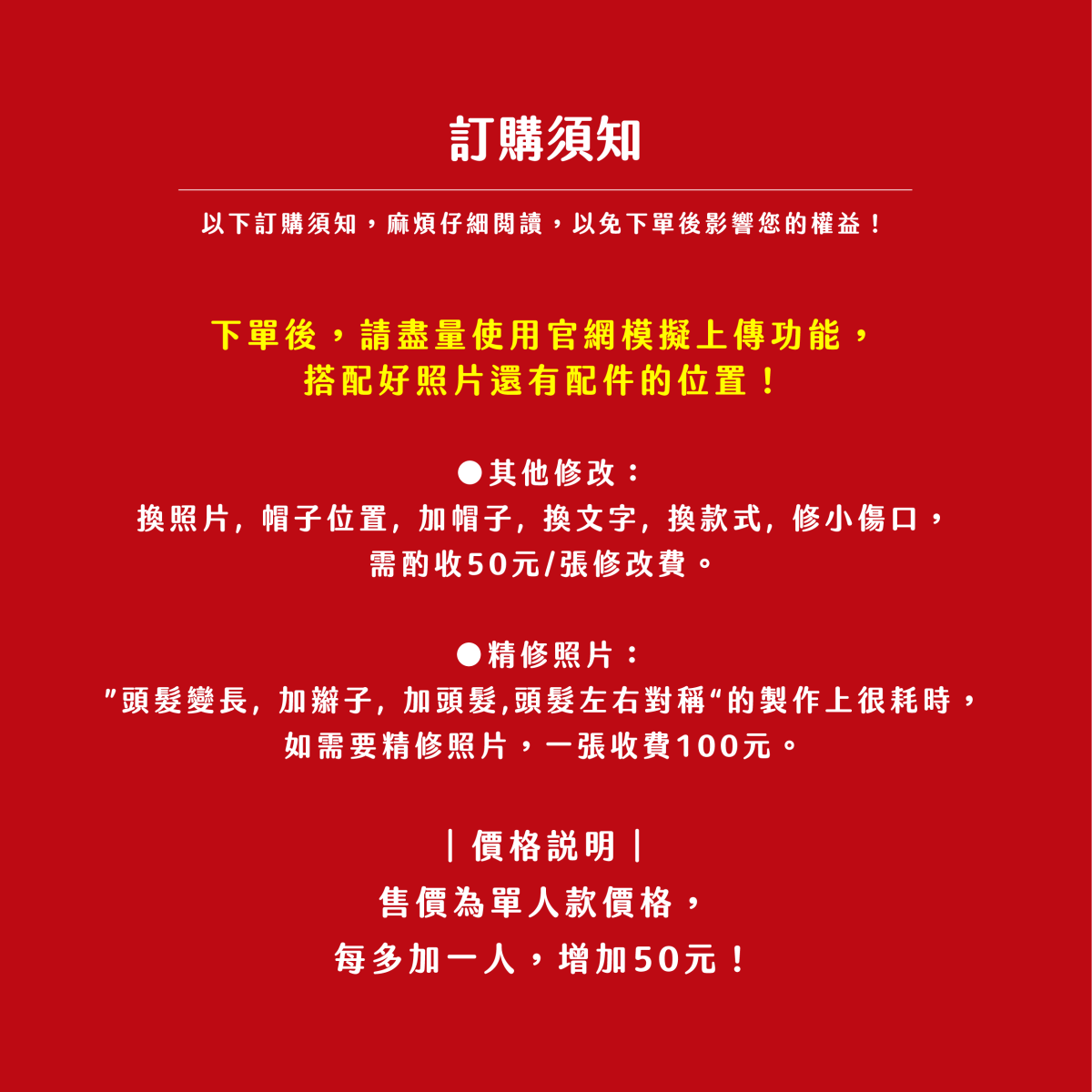 換照片, 帽子位置, 加帽子, 換文字, 換款式, 修小傷口,
