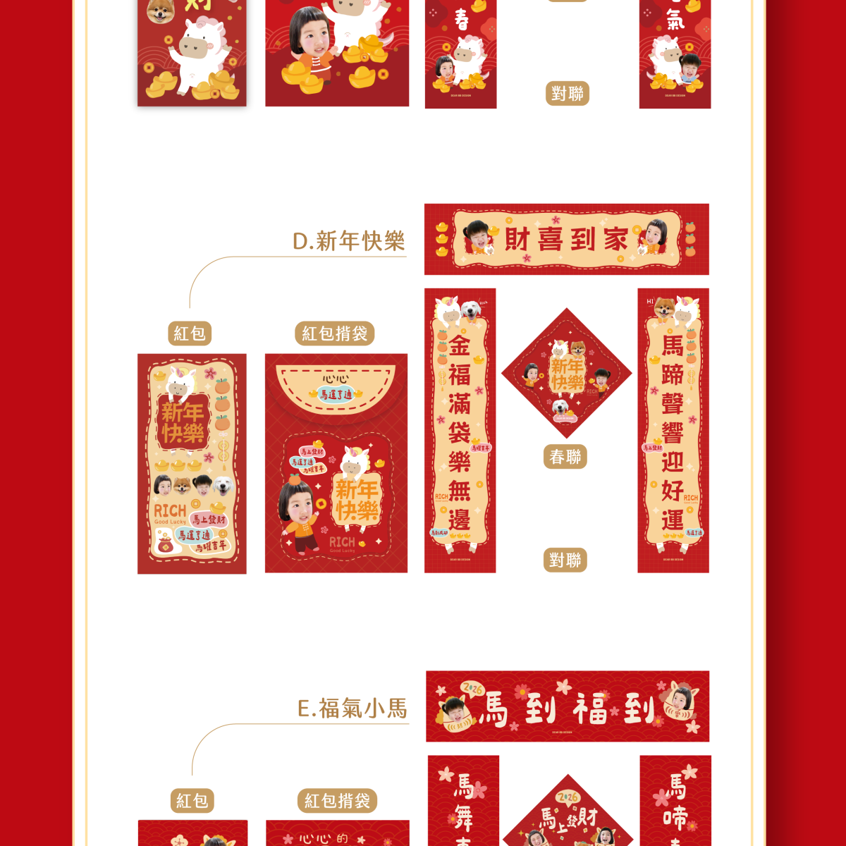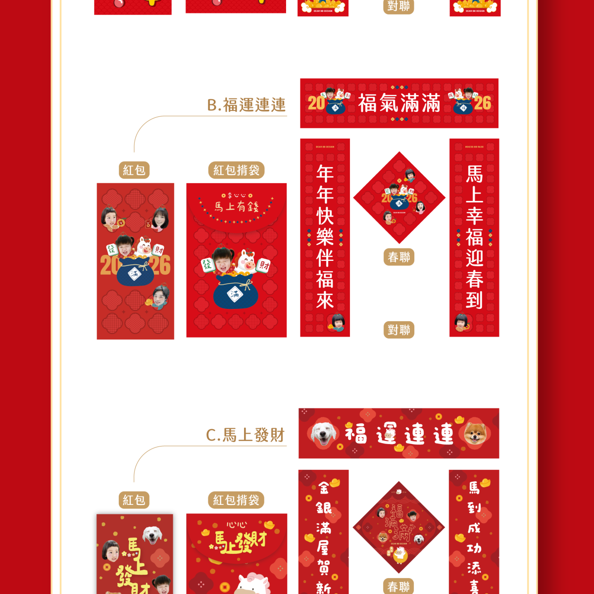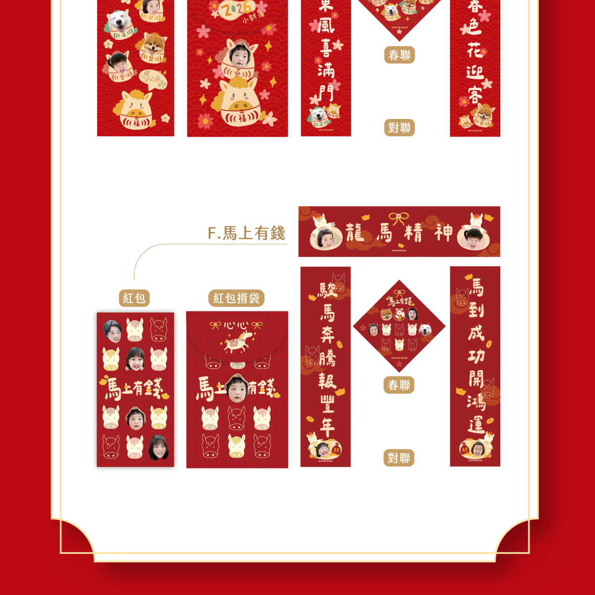 ●此組合為優惠組合,紅包袋/春聯/對聯皆限定4人款,