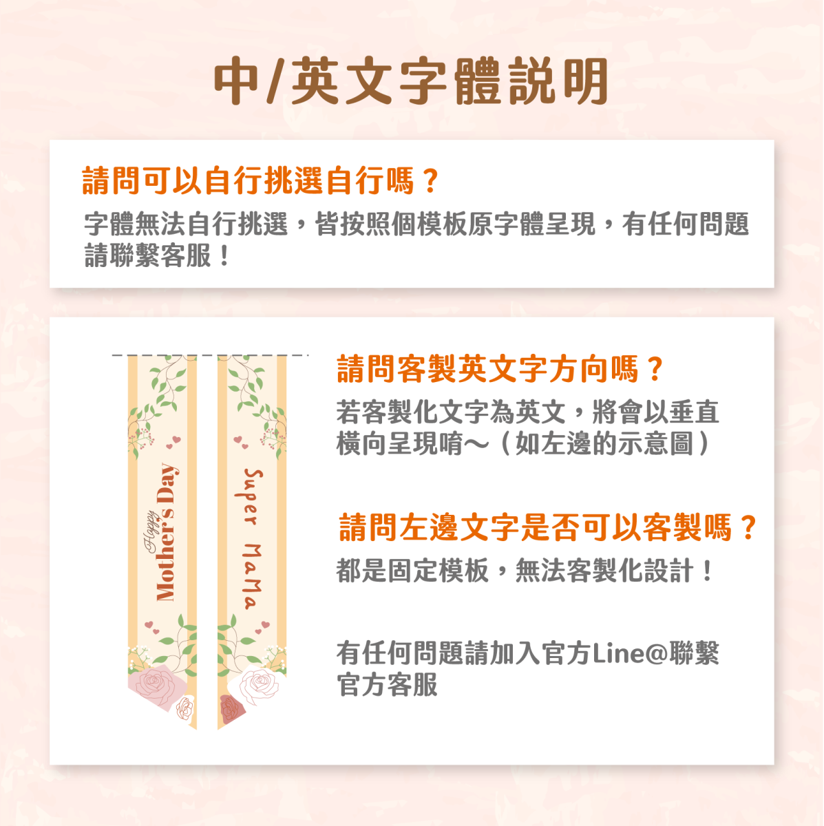 • 若逾時提供照片或資料,將影響出貨時程,恕無法保證於母親節前送達!