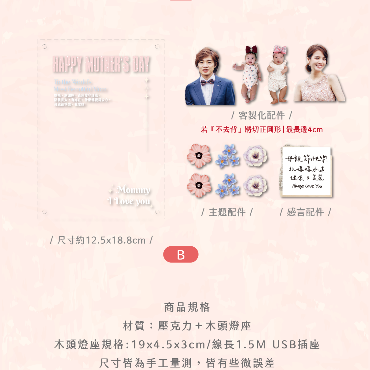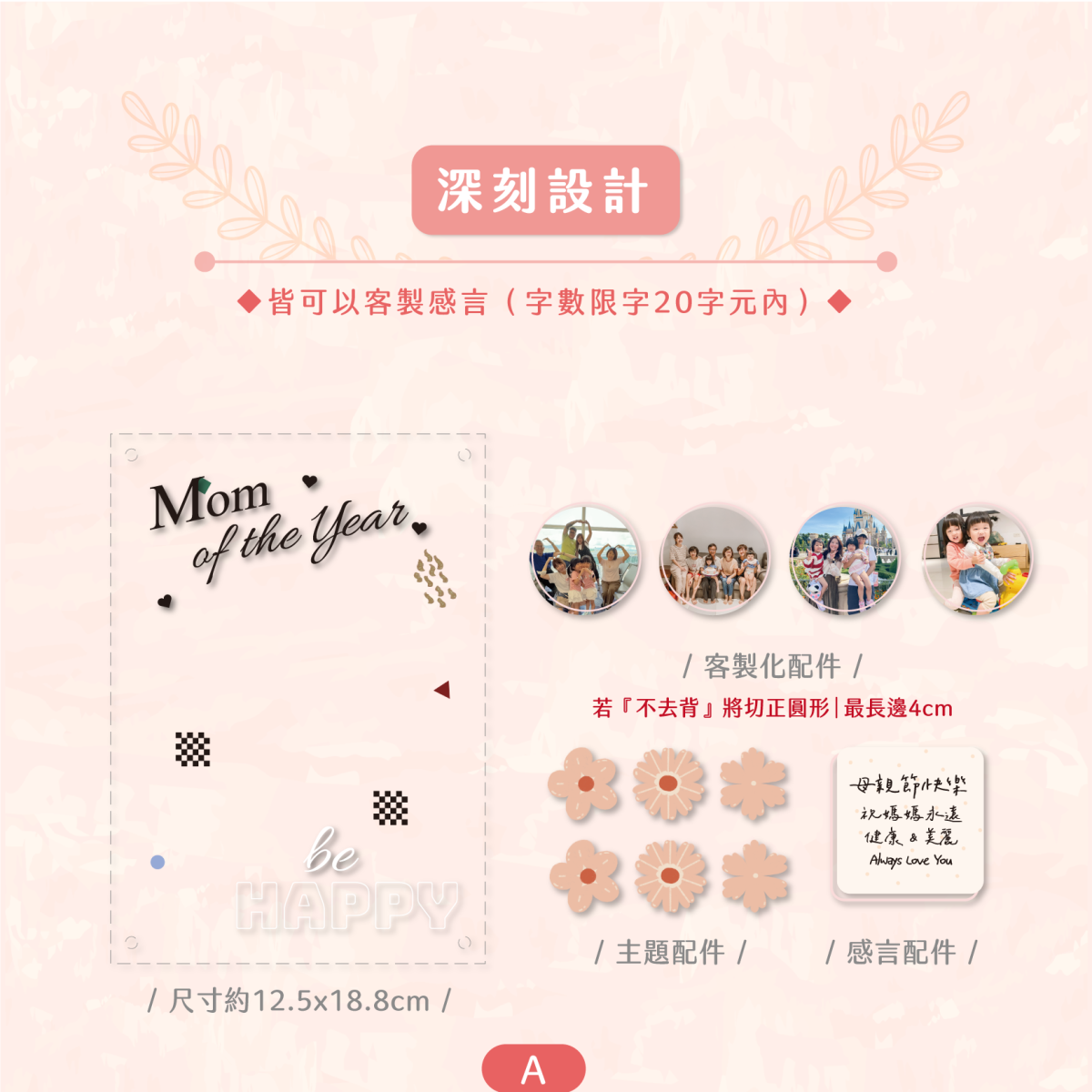 • 若逾時提供照片或資料,將影響出貨時程,恕無法保證於母親節前送達!