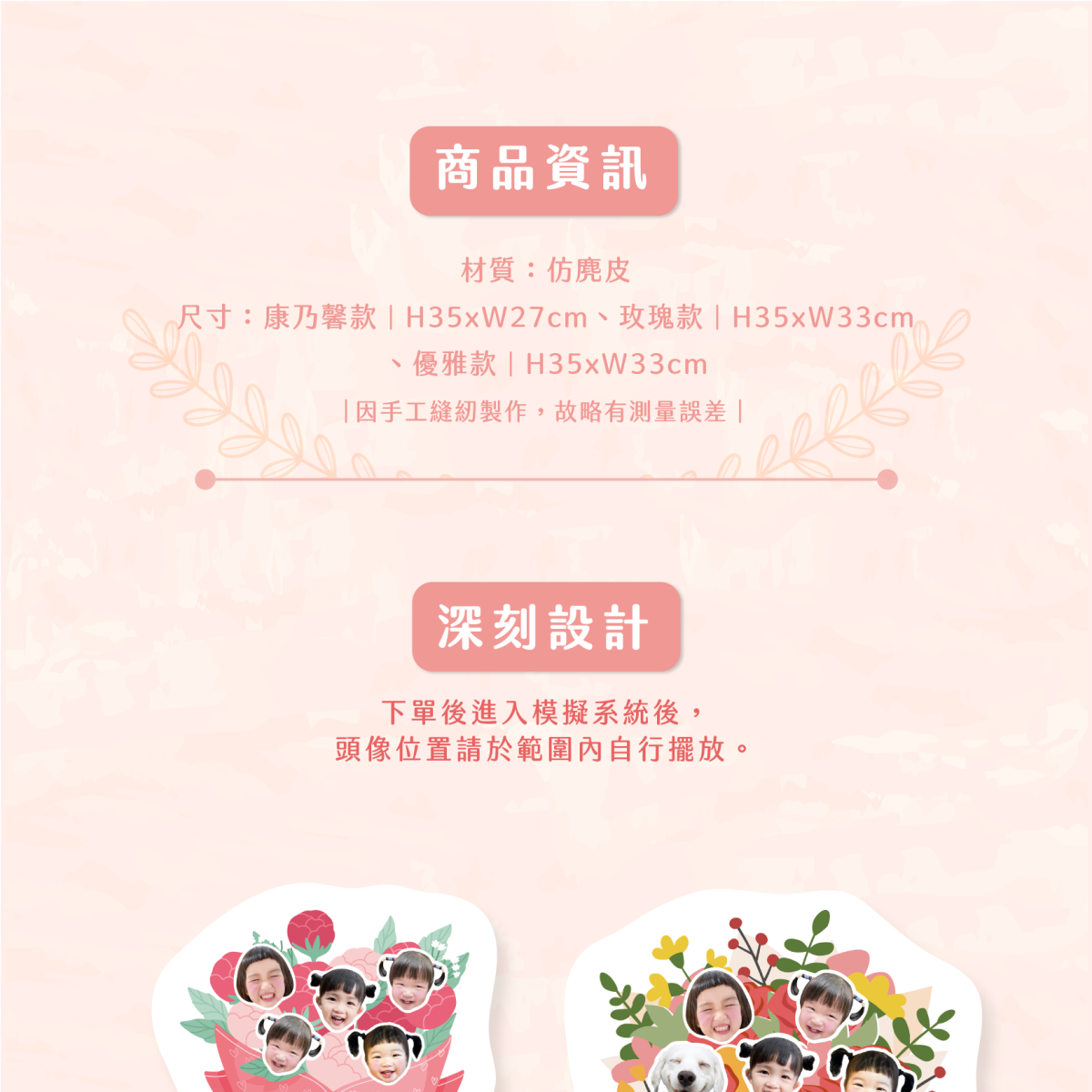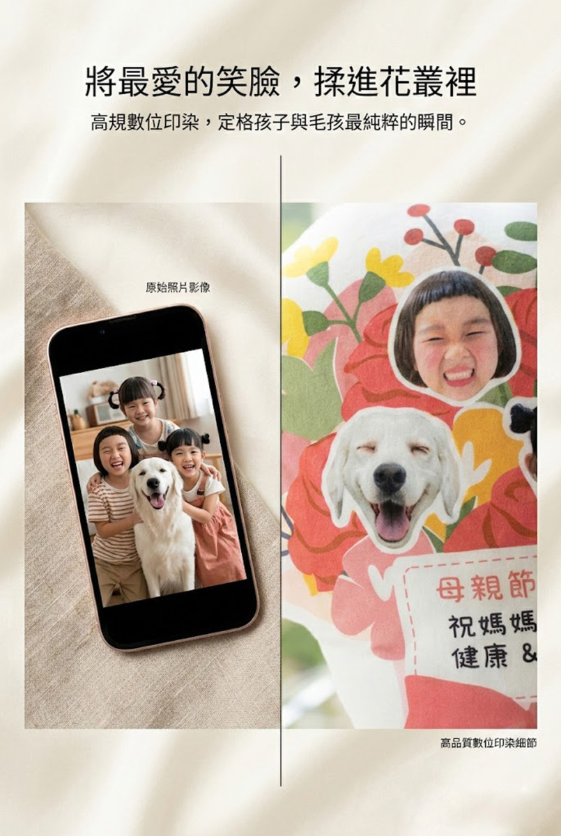 • 若逾時提供照片或資料,將影響出貨時程,恕無法保證於母親節前送達!