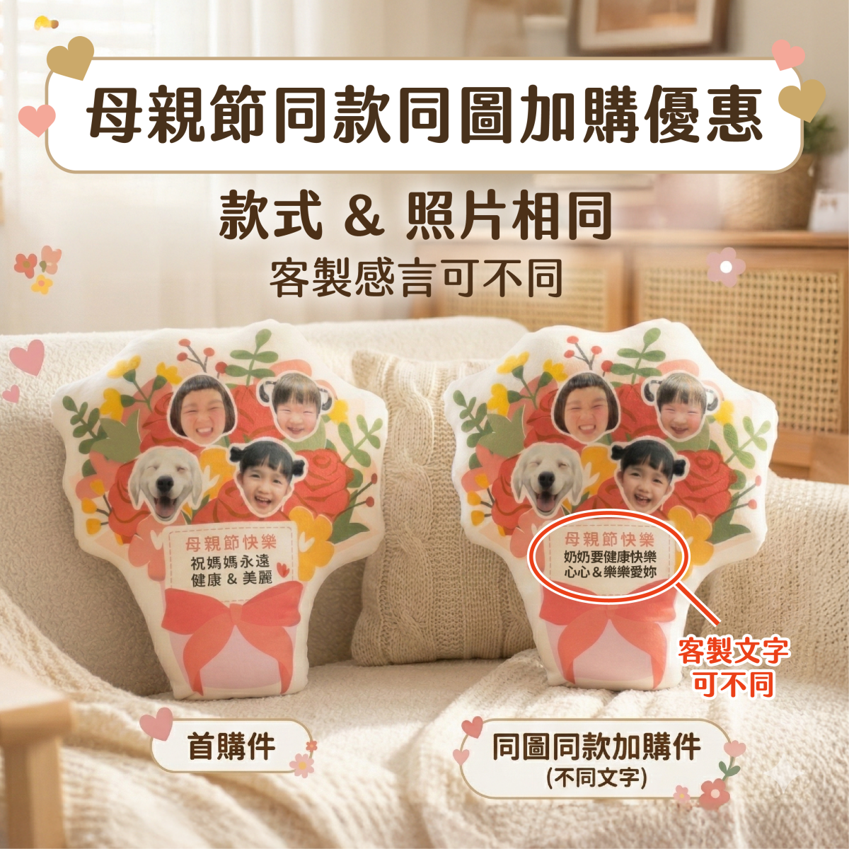 母親節限定 | 客製化花束抱枕(同圖3入超值組)