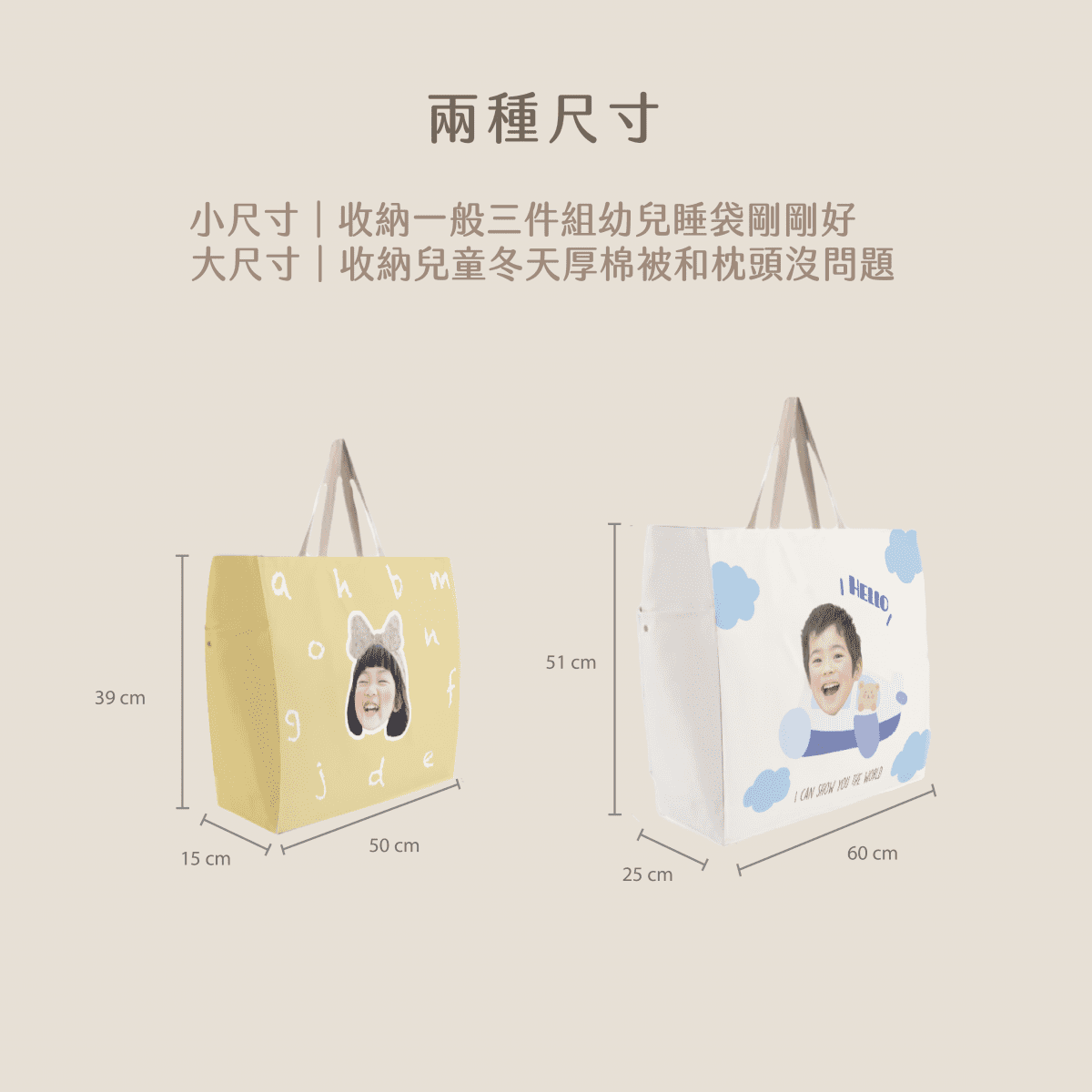 大尺寸的可以裝大人用枕頭3顆,還有收納空間~